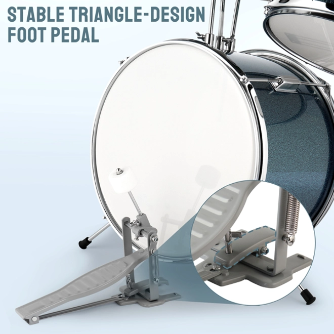 14"x10" 3-Pieces Junior Kids Drum Set Kit Pedal Drum Stick Wrench Drum Stool Sky Blue