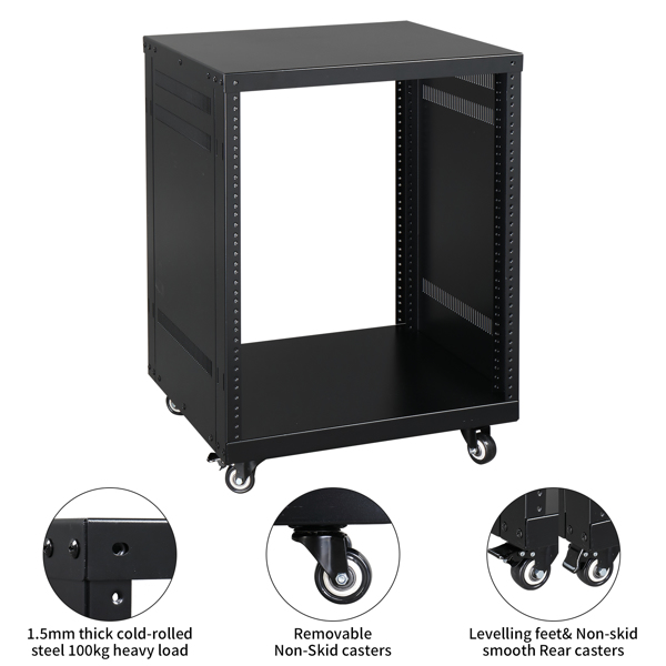 This 19" 12U Single Layer Double Door DJ Equipment Cabinet is the perfect storage solution for convenient security for all kinds of loudspeakers, DJ mixer, and other standard 19-inch audio equipment. which is sturdy, durable and stable. With heavy duty design and convenient features, this cabinet can be used for a long time and it's practical and durable. What are you waiting for?