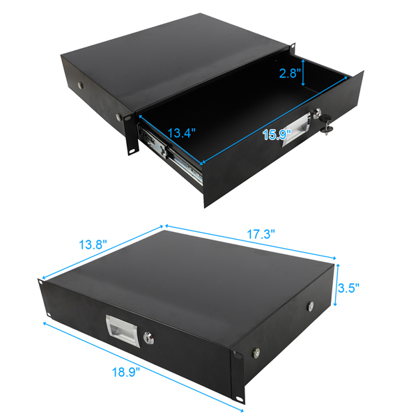 Are you looking for a practical and durable equipment cabinet? Here you are in the right place! This 19" 2U Steel Plate DJ Drawer Equipment Cabinet with Keys will be your best choice. It is perfect for storing anything from software, tools, paper, supplies, cable management or patch cables. With the solid construction and lock design, it is safe and convenient for your daily use. Durable and reliable steel material makes it is more and more popular among people. Don't miss this chance! Just take an order!