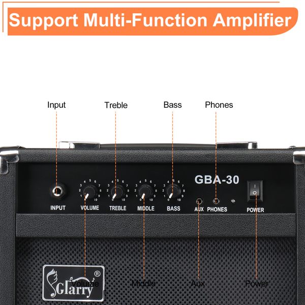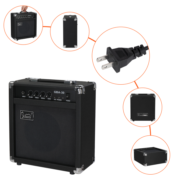 Our Electric Bass Amplifier will satisfy your desire with its wonderful sound effect. This bsaa amplifier is easy to carry. Plastic protection and rubber foot pads on its corners will prevent it from clash and scraping. Soud Creativity experiment with various controls and effects on the guitar and amp, helping to expand your musicality. youcan use for Electric Bass Amplifier practice, street performance, karaoke with friends, band performance.