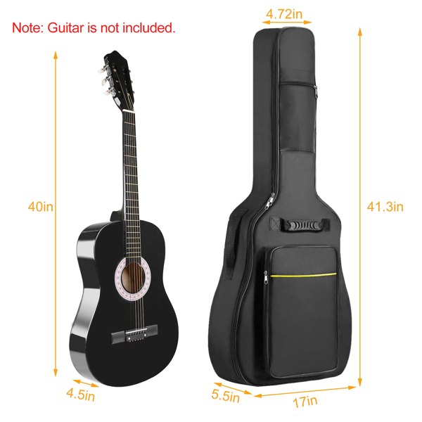 41” Large Dimension: Can fit for up to 41” standard size acoustic guitar. Please confirm that your guitar is not over 41” before ordering.