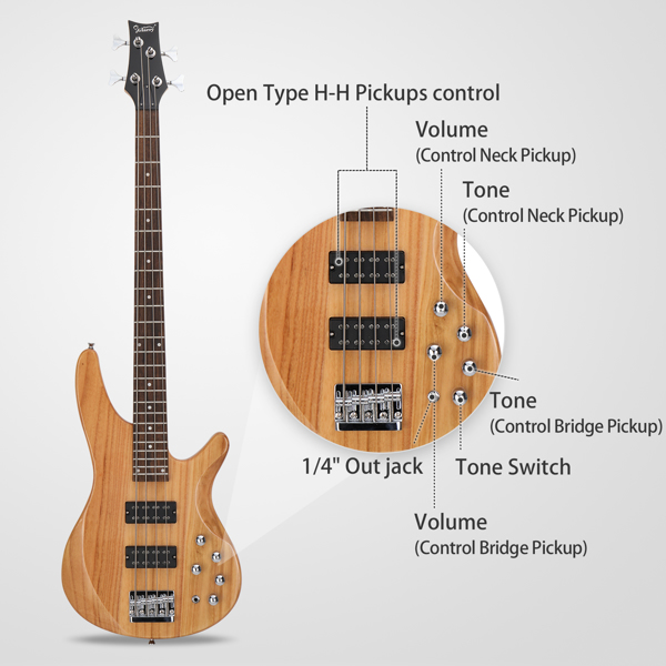 44 Inch GIB 4 String H-H Pickup Laurel Wood Fingerboard Electric Bass Guitar