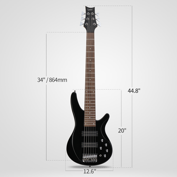 44 Inch GIB 6 String H-H Pickup Laurel Wood Fingerboard Electric Bass Guitar