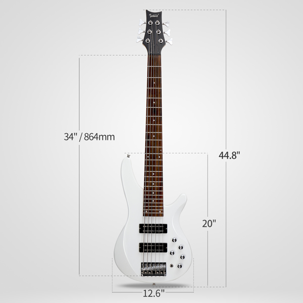 44 Inch GIB 6 String H-H Pickup Laurel Wood Fingerboard Electric Bass Guitar