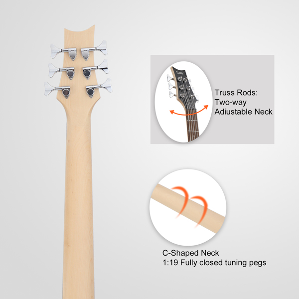 The 6 string bass guitar with a polished surface looks shinier and provides an excellent feeling and playing enjoyment. It features great sound and ease of playability. Constructed with a wooden body with a stunning finish, it delivers an outstanding look and sound. Comfortable C-shaped neck and fingerboard are ideal for any style of playing. Adjustable bridge provides solid tone, sustain, and great intonation.it is an ideal choice for beginners as well as bass musicians.