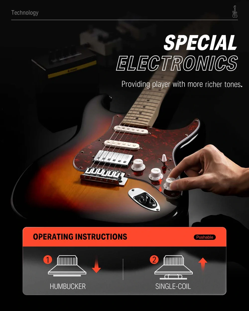 Coil Split Function: Equipped with a PUSH-PULL switch circuit, the humbucking pickup can be split to release classic single-coil tones, providing players with richer tones.