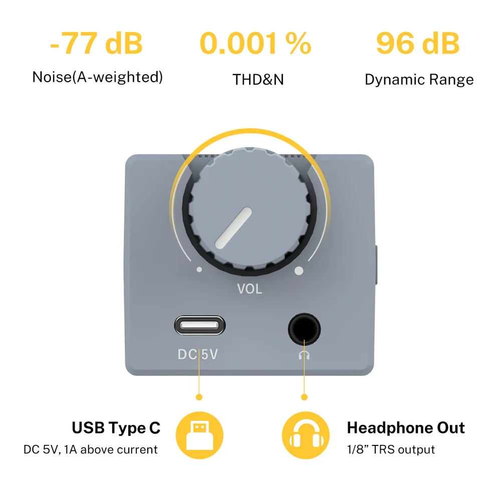 High power: High power of headphone amplifier suited for high impedance professional headphone, make sure there is enough volume in noisy surroundings. (Don't support microphone)