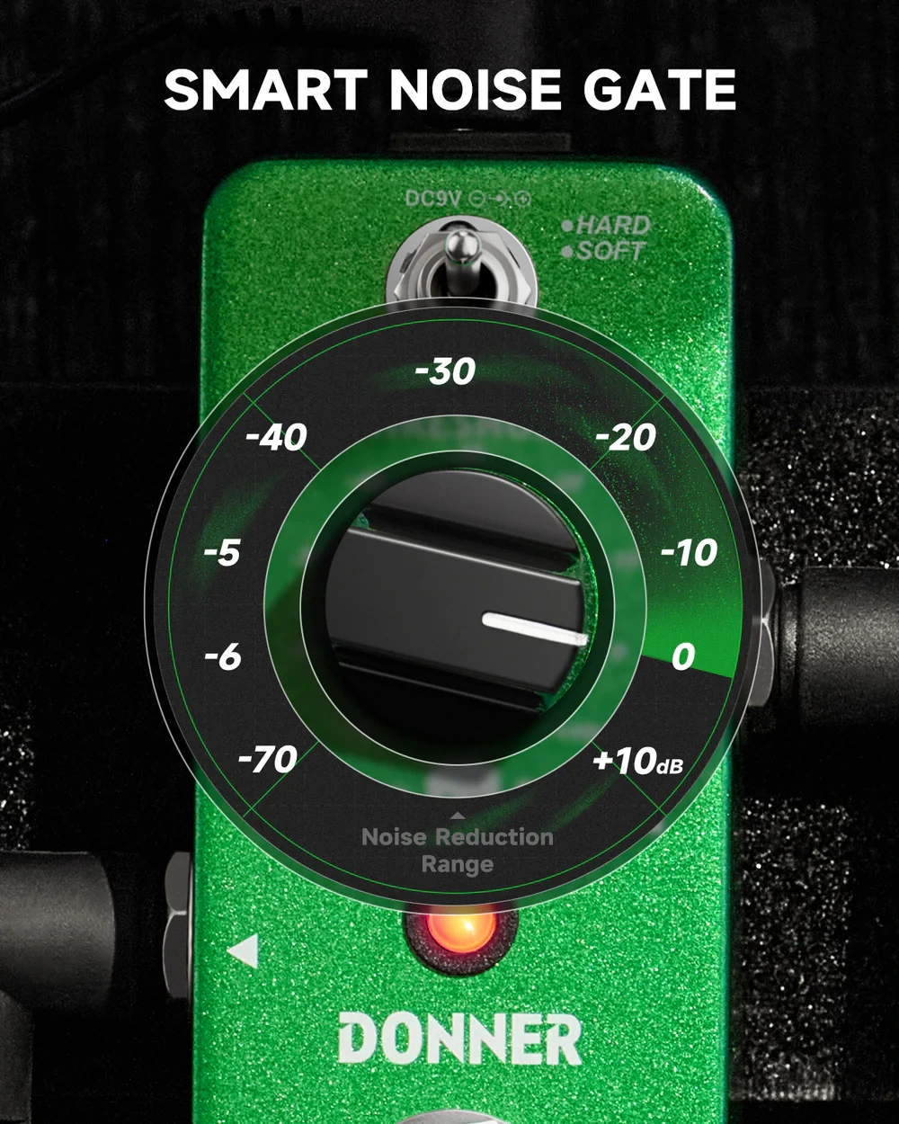 Noise Gate Pedal: Offers a noise reduction range from -70 to +10dB for clear, quiet performance.
