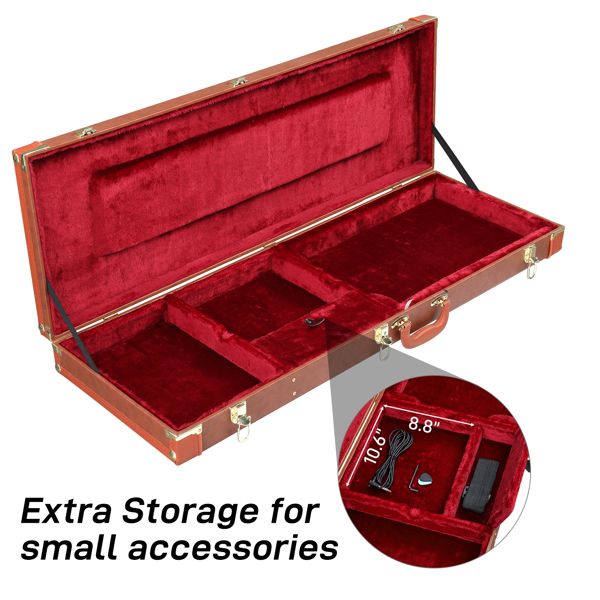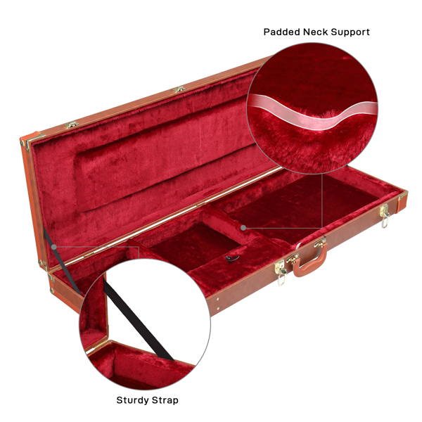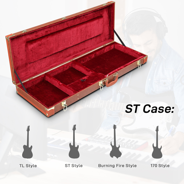 If you are an electric guitar lover, I think this ST High Grade Electric Guitar Square Hard Case Flat is a product you can't miss. It is made of high quality wood, leather, plush and hardware accessories material, durable and sturdy in use. It features good quality, high strength of the case and high quality PU leather, so you can use it for a long time. It has large interior storage compartment for accessories. And it is designed for electric guitars. You are worth it!