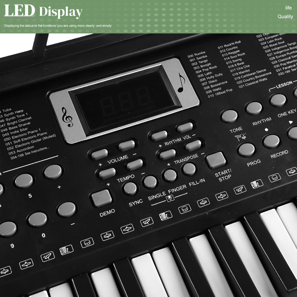 1. 61 Piano-Styled Keys/LED Display