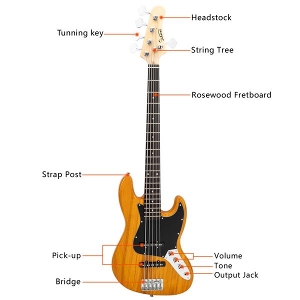 This 5-string jazz style electric bass guitar features a solid body design and extended low-B range for versatile performance across jazz, funk, rock, and modern styles. Designed for right-handed players, it offers smooth playability and balanced tone suitable for beginners and experienced bassists alike. A comfortable neck profile and classic jazz-style pickup configuration provide clear articulation and consistent response for practice, recording, or live use.
