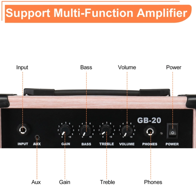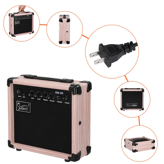 Glarry 20W GB-20 Electric Bass Guitar Practice Amplifier Natural Color