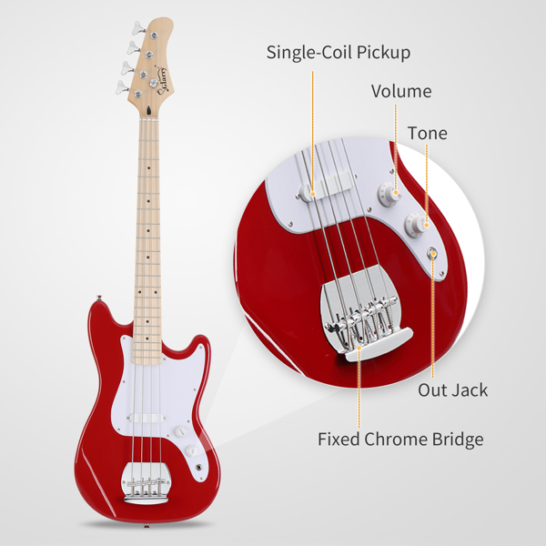 Glarry 4 String Single Coil Pickup GB Bass Guitar! Featuring great sound and ease of playability, it is an ideal choice for beginners. Constructed with a wooden body with a stunning finish, Single Pickups control get a achieve a bright, clear tone. Comfortable neck and fingerboard are ideal for any style of playing. Adjustable bridge provides solid tone, sustain, and great intonation. High-tensile strength fretwire ensures durability and smooth playability. Bring it home right now!