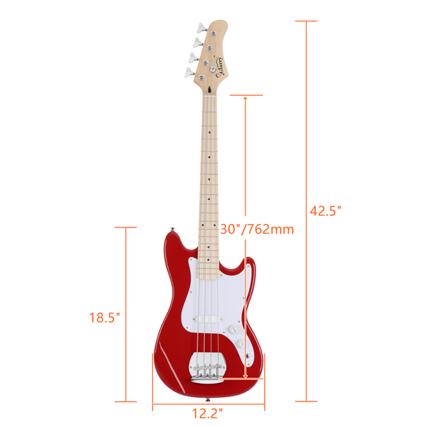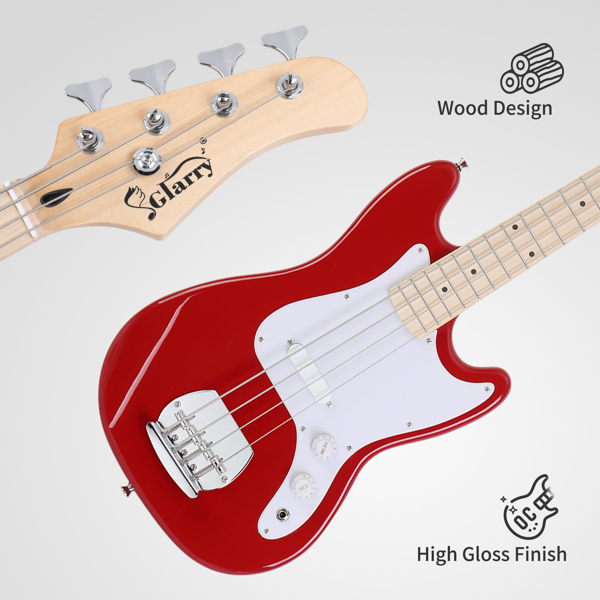 Glarry 4 String 30in Short Scale Thin Body GB Electric Bass Guitar