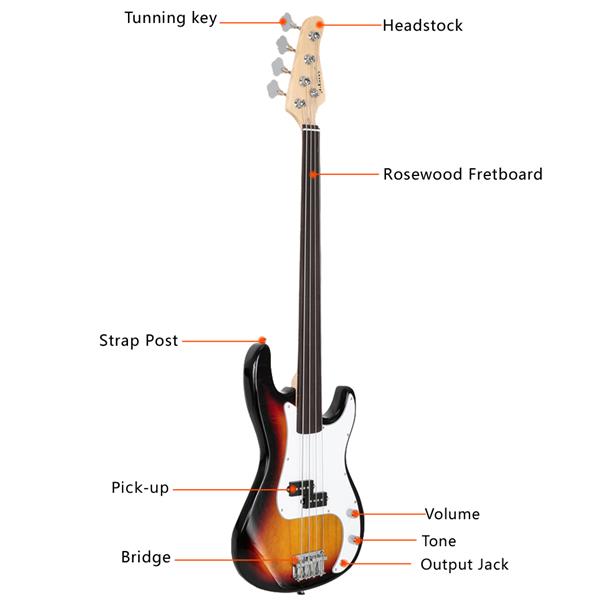 Introducing the Glarry Fretless Electric Bass Guitar, a full-size 4-string instrument that’s perfect for musicians looking to explore new sounds and styles. This bass guitar is designed for those who want to break free from the traditional confines of frets and embrace the smooth, fluid playability that a fretless design offers. Whether you're a seasoned pro or just starting your musical journey, the Glarry Fretless Bass is here to elevate your playing experience.