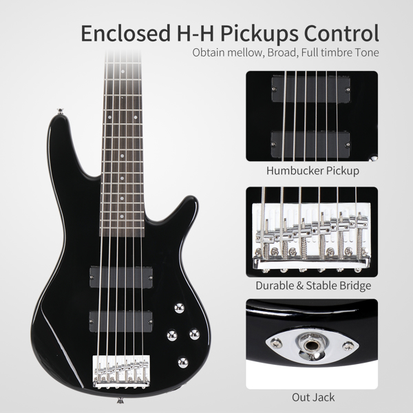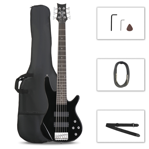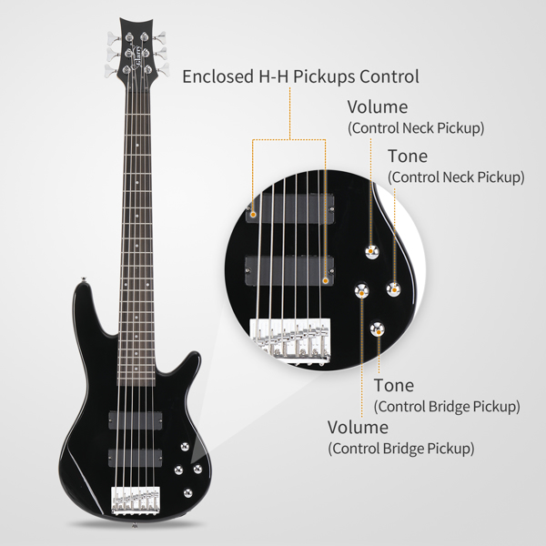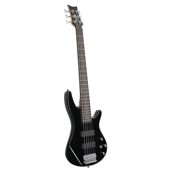 Glarry Full Size GIB 6 String H-H Pickup Electric Bass Guitar Black