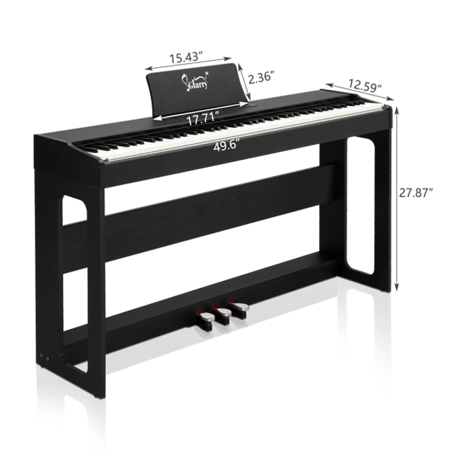 Glarry 88 Keys Digital Piano Full Weighted Keyboards adopts the High Quality DREAM sound source, digital sampling, has 3 Pedal System (Soft/Sustain/Sostenuto Pedal), which can bring you the most striking sound effects. At the same time we have functions: Metronome, Touch/transpose control, Split/Touch Control, Volume Control, USB, Midi input/output, Record/Play, Audio input/output. Through the connection of Midi input and APP, you can realize the follow-up function, easy for beginners to learn. Our 88 key piano with two Dual Bluetooth, Audio Bluetooth and MIDI Bluetooth. Connect a COMPUTER or tablet with a USB cable for multimedia interaction. After the piano is turned on, Bluetooth will be automatically turned on. The mobile phone can search the MIDI Bluetooth signal of this piano. After the connection, the playing software on the mobile phone can realize the wireless connection with the piano.