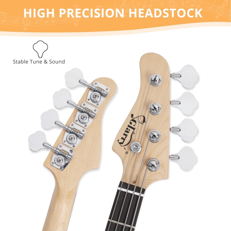 Made with naturally dried solid basswood body, maple neck and rosewood fingerboard, this bass guitar is built to last. The quality tonewood interstitial structure is uniform and dense, ensuring it won't crack or deform easily. The polished surface adds a shiny touch that can withstand years of wear and tear.
