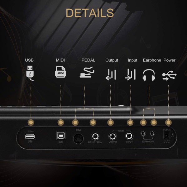 Glarry 88 Key Digital Piano Folding Piano Semi-Weighted Standard Keyboards Digital Piano Design adopts superior quality custom Dream Sound source, which can bring you the most striking sound effects. Our 88 key piano with two Dual Bluetooth,Audio Bluetooth and MIDI Bluetooth,Connect a COMPUTER or tablet with a USB cable for multimedia interaction. After the piano is turned on, bluetooth will be automatically turned on. The mobile phone can search the MIDI Bluetooth signal of this piano. After the connection, the playing software on the mobile phone can realize the wireless connection with the piano. it can also be used as a gift for relatives and friends, or as a prop for theatrical performances.