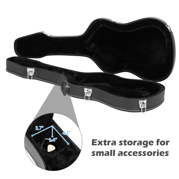 If you are an electric guitar lover, I think this High-Grade Electric Guitar Hard Case is a product you can't miss. It is made of high-quality wood, leather, plush and hardware accessories material, durable and sturdy in use. It features good quality, high strength of the case and high-quality leather, so you can use it for a long time. It has large interior storage compartment for accessories. And it is designed for electric guitars. What are you still waiting for? Good choice for you.