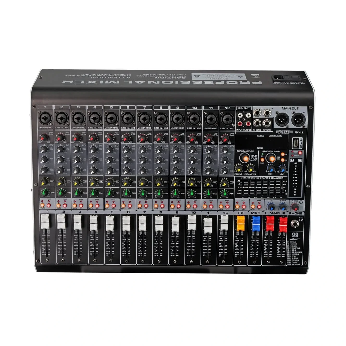 Professional 12-Channel Mixing Console for DJ/Live/Studio — USB Audio, Bluetooth Streaming, 99 DSP E