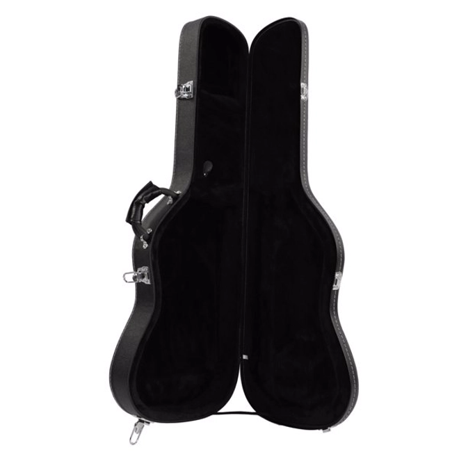 1. Lockable wood hard case with plush lined interior that includes extra neck and bridge padding
