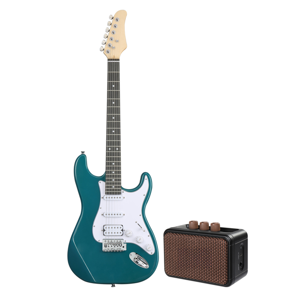 ST Style H-S-S Pickup Electric Guitar Kit with 5W AMP Bag Guitar Strap Strings Lake Blue