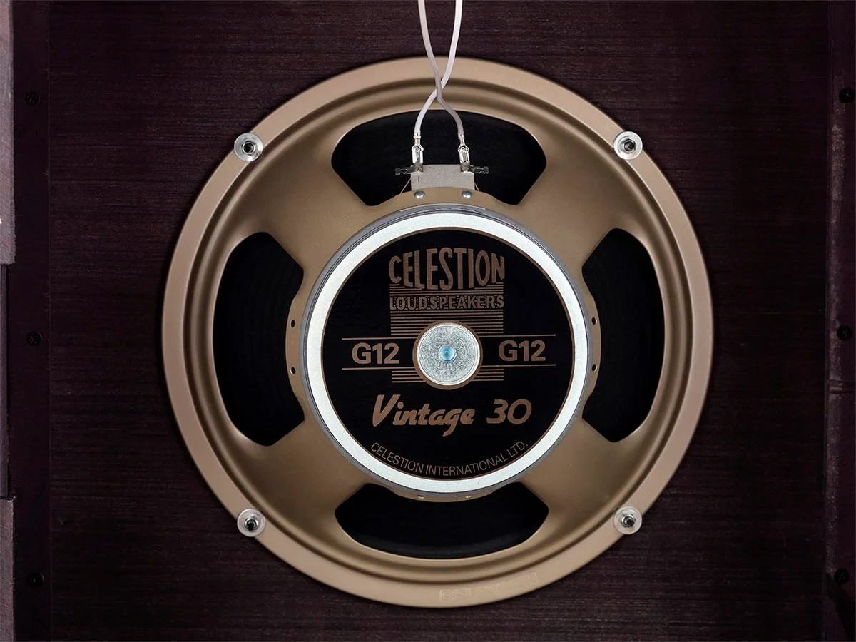 The Celestion® Vintage 30 guitar speaker features enormously detailed and complex overtones, a warm low‑end, and a famously rich vocal‑like mid‑range. Its sound has been captured on thousands of recordings from a diverse range of notable players including Slash, Steve Stevens, and Peter Frampton.