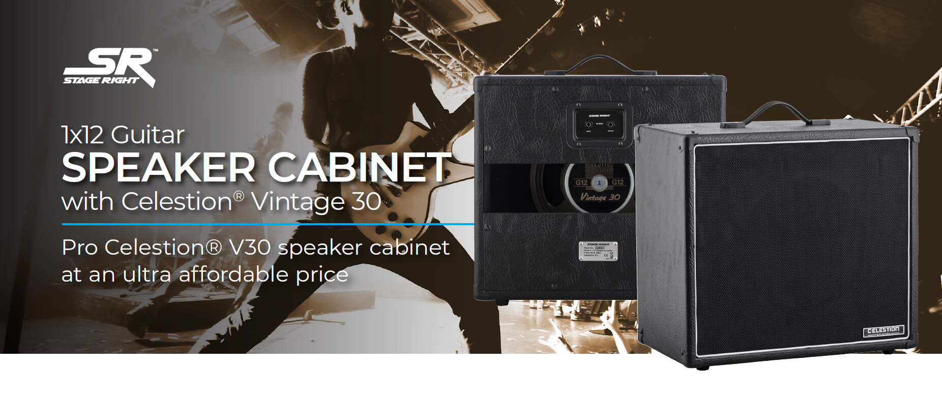 Loaded with an industry standard Celestion® Vintage 30 speaker, the Stage Right™ 1x12 Guitar Speaker Cabinet is the perfect match to our Stage Right 30‑Watt Tube Guitar Amplifier Head.