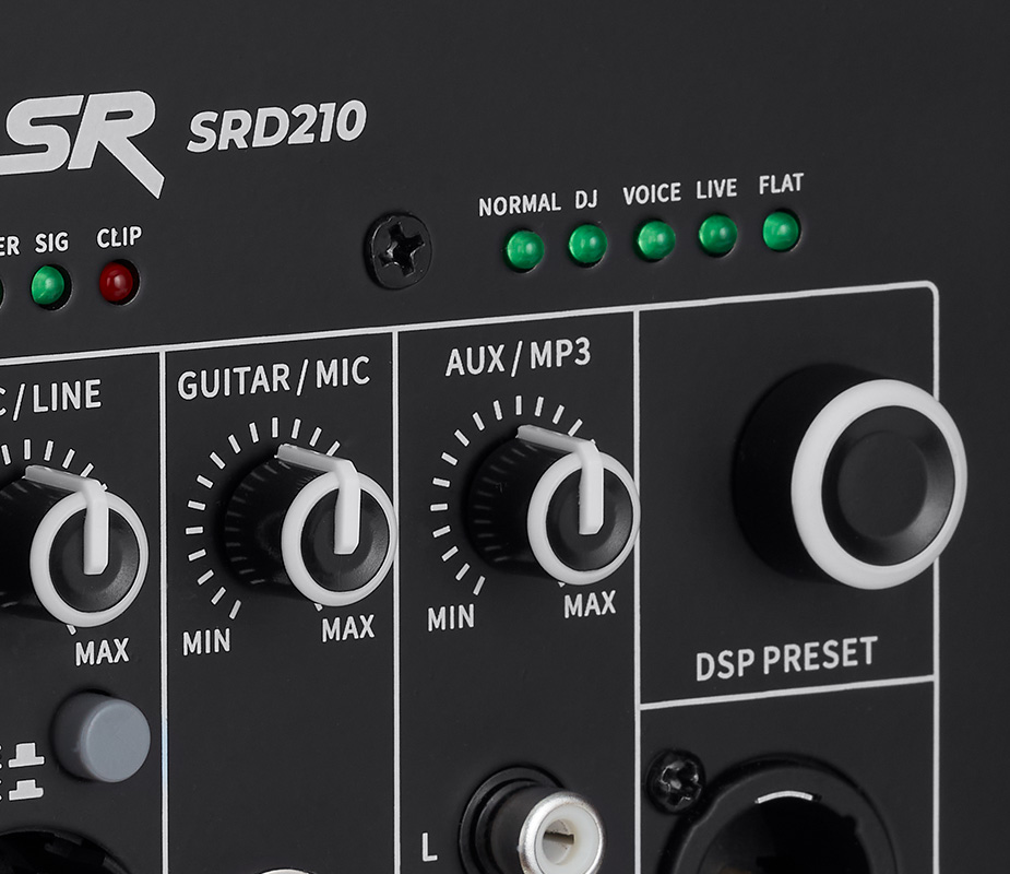 Unlike most other live sound speakers with built‑in DSP, Stage Right™ has ensured that SRD speakers are both useful and intuitive. Featuring five different DSP presets controlled by a single knob, SRD speakers cover a huge range of applications and types of audio