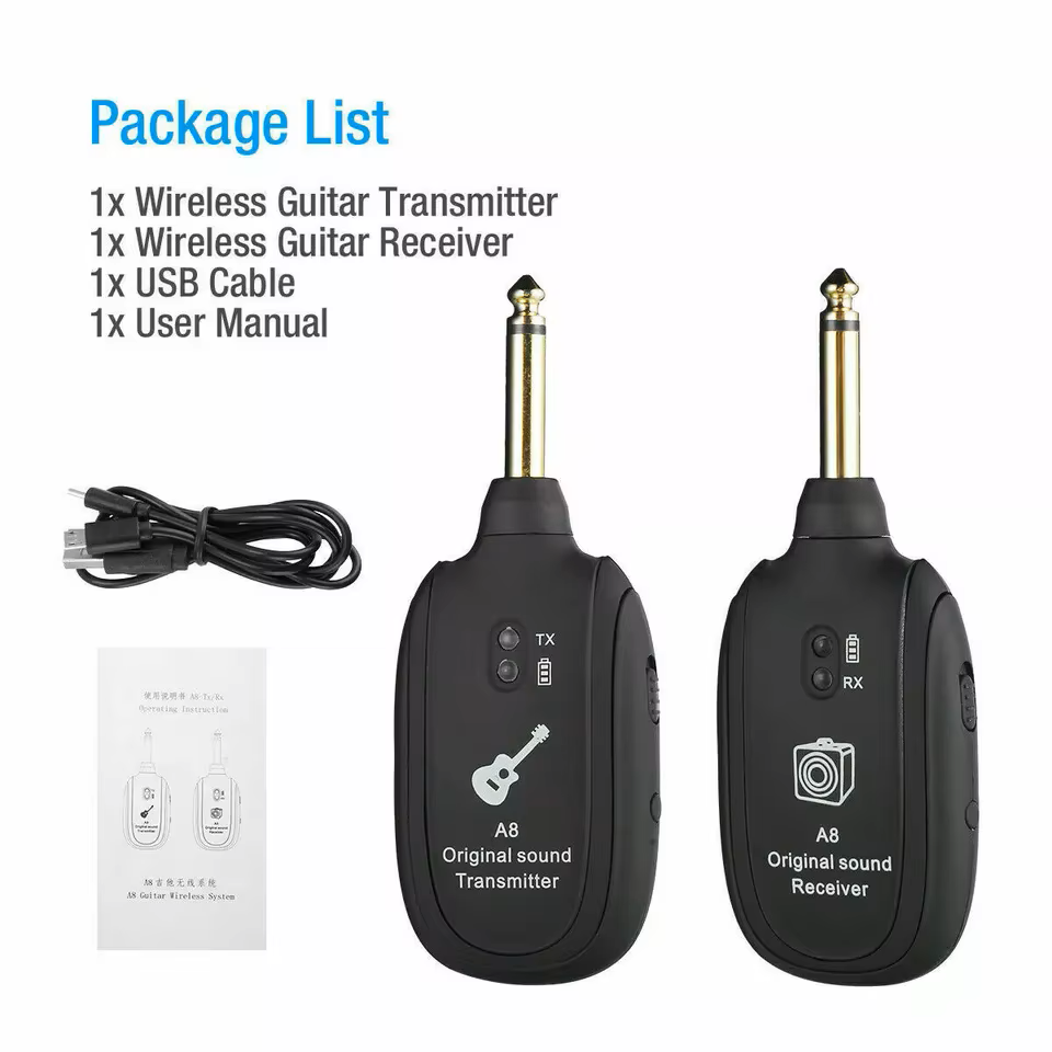 Compact Design:The wireless guitar transmitter & receiver are made out of durable ABS plastic that can withstand the rigors of touring and the harshest of climates. This wireless guitar system is perfect for any pedal board thanks to its simplistic, and compact design.